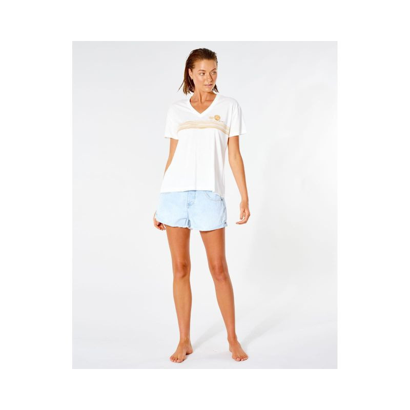 RIP CURL Sunset Tričko s výstřihem do V - bílé
