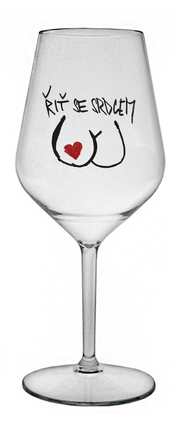 ŘIŤ SE SRDCEM - čirá nerozbitná sklenice na víno 470 ml