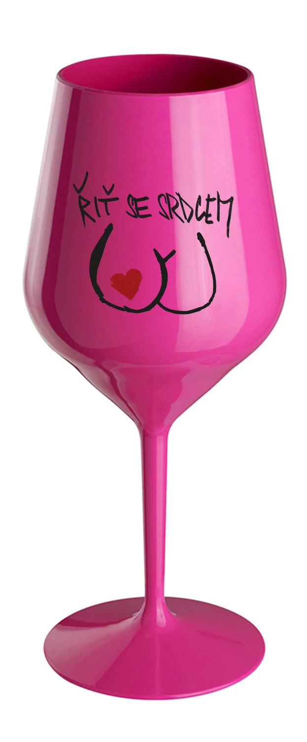 ŘIŤ SE SRDCEM - růžová nerozbitná sklenice na víno 470 ml