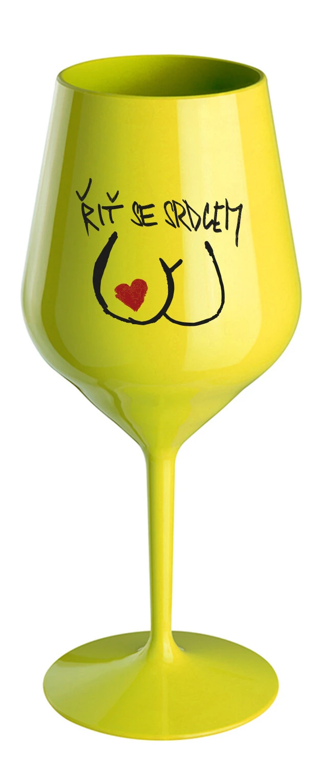 ŘIŤ SE SRDCEM - žlutá nerozbitná sklenice na víno 470 ml