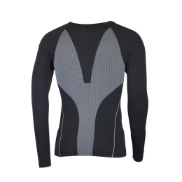 Bielizna z długim rękawem wykonana z przyjemnego w dotyku funkcjonalnego materiału, który świetnie sprawdzi się podczas wszelkich aktywności sportowych. Elastyczny materiał w połączeniu z różnymi typami tkaniny w zależności od miejsca wykroju, zapewnia wygodę użytkowania i nieograniczoną swobodę ruchów. Technologia wykonania włókien Dryarn gwarantuje funkcjonalność materiału nawet po częstym praniu. Włókna Dryarn regulują naturalną florę bakteryjną, która znajduje się na skórze - ograniczają namnażanie się bakterii podczas intensywnego wysiłku, zapobiegają reakcjom alergicznym, nieprzyjemnym otarciom oraz zaczerwienieniu skóry. Delikatna i oddychająca struktura tkaniny wspiera odprowadzanie potu z powierzchni skóry. Rękawy i dół koszulki luźno zakończone, wykończenie z grubszej tkaniny. Pod szyją dopasowany kołnierzyk. Logo Rogelli w szarym kolorze umieszczono z przodu koszulki.