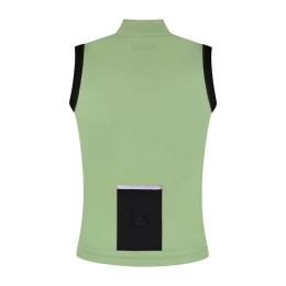 Projekt jest czysty i przemyślany. Wycięte laserowo otwory na ramiona zapewniają płynne zakładanie na koszulkę, a silikonowy ściągacz w pasie zapobiega podwijaniu się kamizelki podczas jazdy. Praktyczna tylna kieszeń pozwala na kompaktowe spakowanie kamizelki, gdy świeci słońce lub tempo jazdy wzrasta.