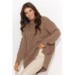 Dámský svetr z hřejivého fleecu. Skutečná lahůdka pro milovníky zimního pohodlí. Svetr se zastrčí přes hlavu. Má asymetrický střih, zadní díl je o něco delší než přední. Na bocích svetru je viditelný rozparek, který mu dodává na lehkosti a ležérnosti. Svetr má velkorysý a hřejivý rolák a dlouhé rukávy s praktickými žebrovanými konci. Jeho výrazným prvkem jsou různé vzory, včetně efektních plédů umístěných na přední straně. Tento svetr se skvěle kombinuje s legínami nebo přiléhavými kalhotami a lze jej nosit i jako tuniku. K dostání ve třech barevných provedeních. Tento model svetru vám umožní vyjádřit váš individuální styl a poskytne neuvěřitelnou volnost, přičemž dodá vašemu vzhledu charakter.