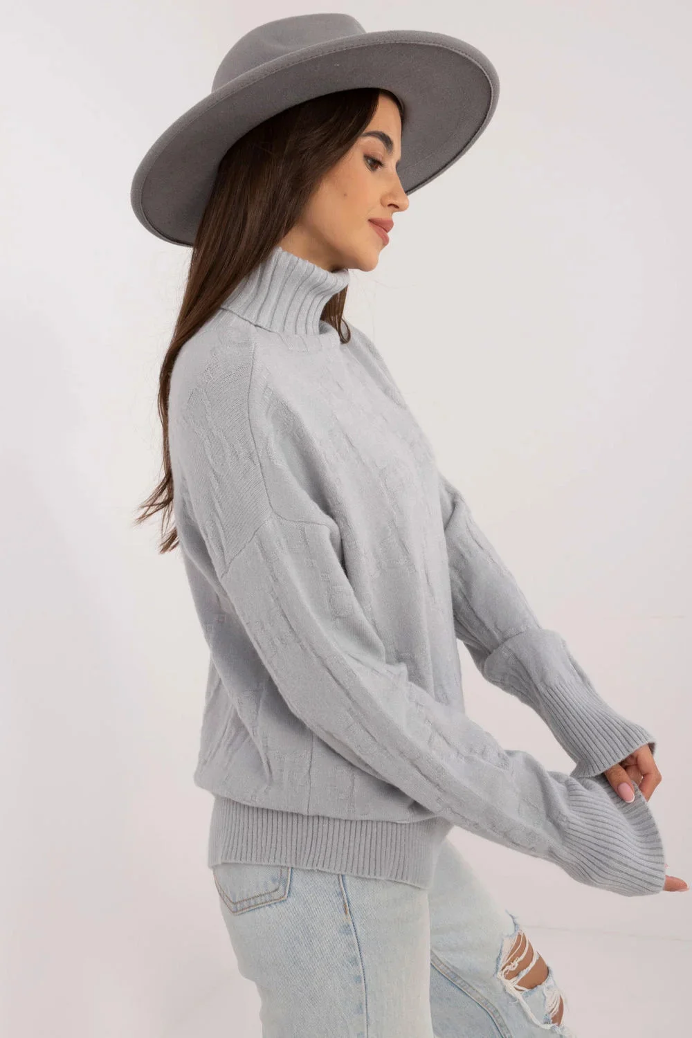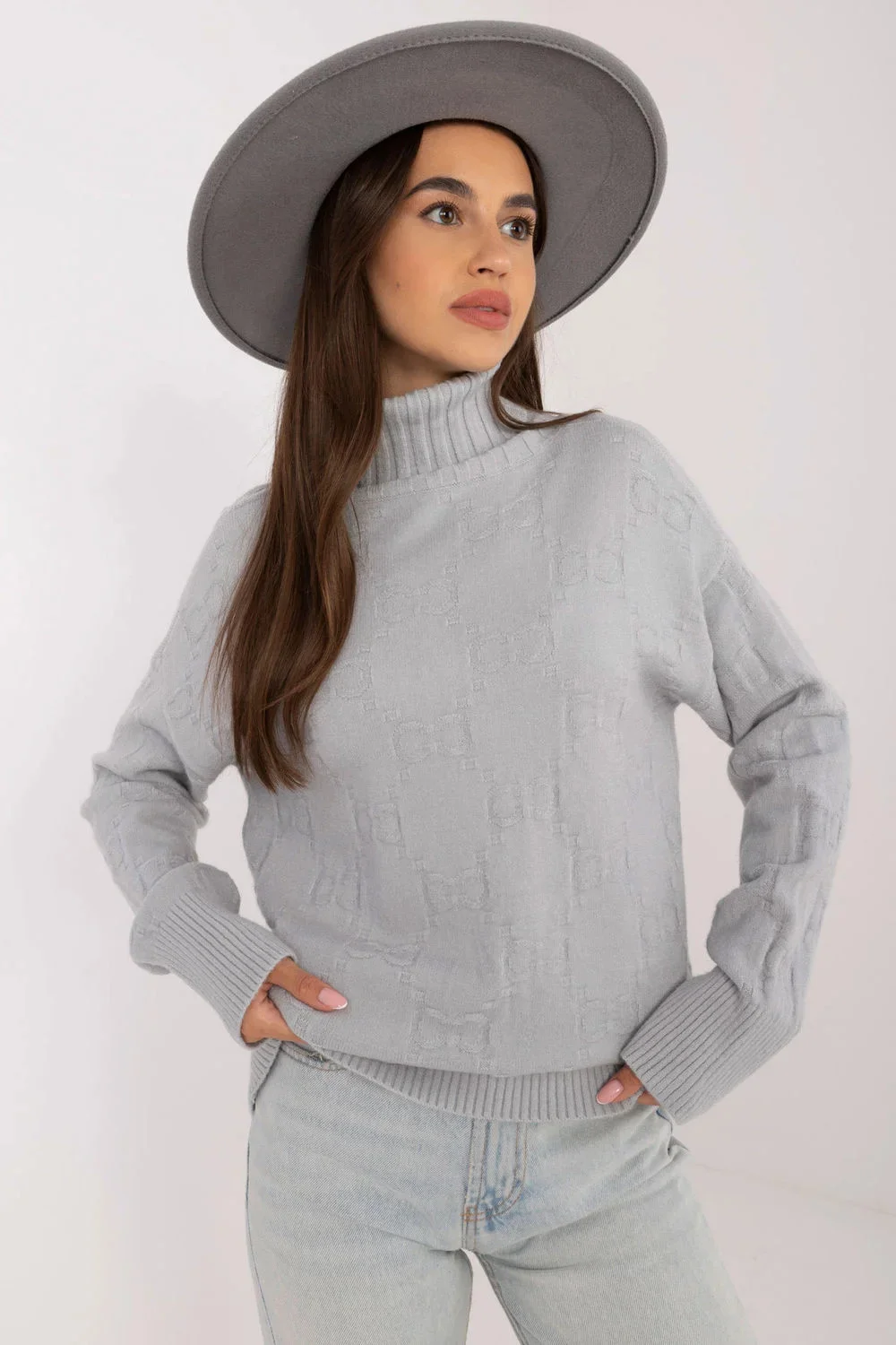 Dámský svetr s golfovým výstřihem, ideální pro každodenní příležitosti v casual stylu. Vyroben z materiálu s různorodou strukturou, co mu dodává výjimečný charakter. Dominujícím materiálem je směs akrylu, polyesteru a polyamidu, co zajišťuje trvanlivost a pohodlí nošení. Svetr má standardní délku a dlouhé rukávy, co ho činí univerzálním výběrem na chladnější dny.