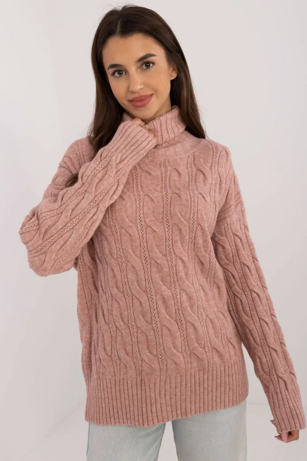 Svetr s golfovým límcem, ideální na každý den v casual stylu. Vyroben z různorodého materiálu, který kombinuje akryl, polyester a polyamid, poskytující pohodlí a odolnost. Svetr má standardní délku a dlouhé rukávy, což ho činí skvělou volbou na chladnější dny.