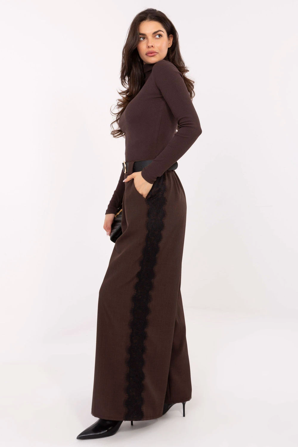Klasický a elegantní golfový svetr v casual stylu, ideální na každodenní nošení i do práce. Vyrobený z vysoce kvalitní směsi bavlny a elastanu, je měkký, pružný a příjemný na dotek, poskytující pohodlí po celý den. Model s přiléhavým střihem a standardní délkou krásně zdůrazňuje postavu, a pruhovaný materiál mu dodává jemnou fakturu a moderní charakter. Golfový límec účinně chrání před chladem, zatímco se jeví stylově a nadčasově. Jedná se o univerzální kousek oblečení, který skvěle ladí jak s džíny, tak s elegantními kalhotami nebo sukní. Ideální volba pro ženy, které ocení jednoduchost, pohodlí a klasickou eleganci.