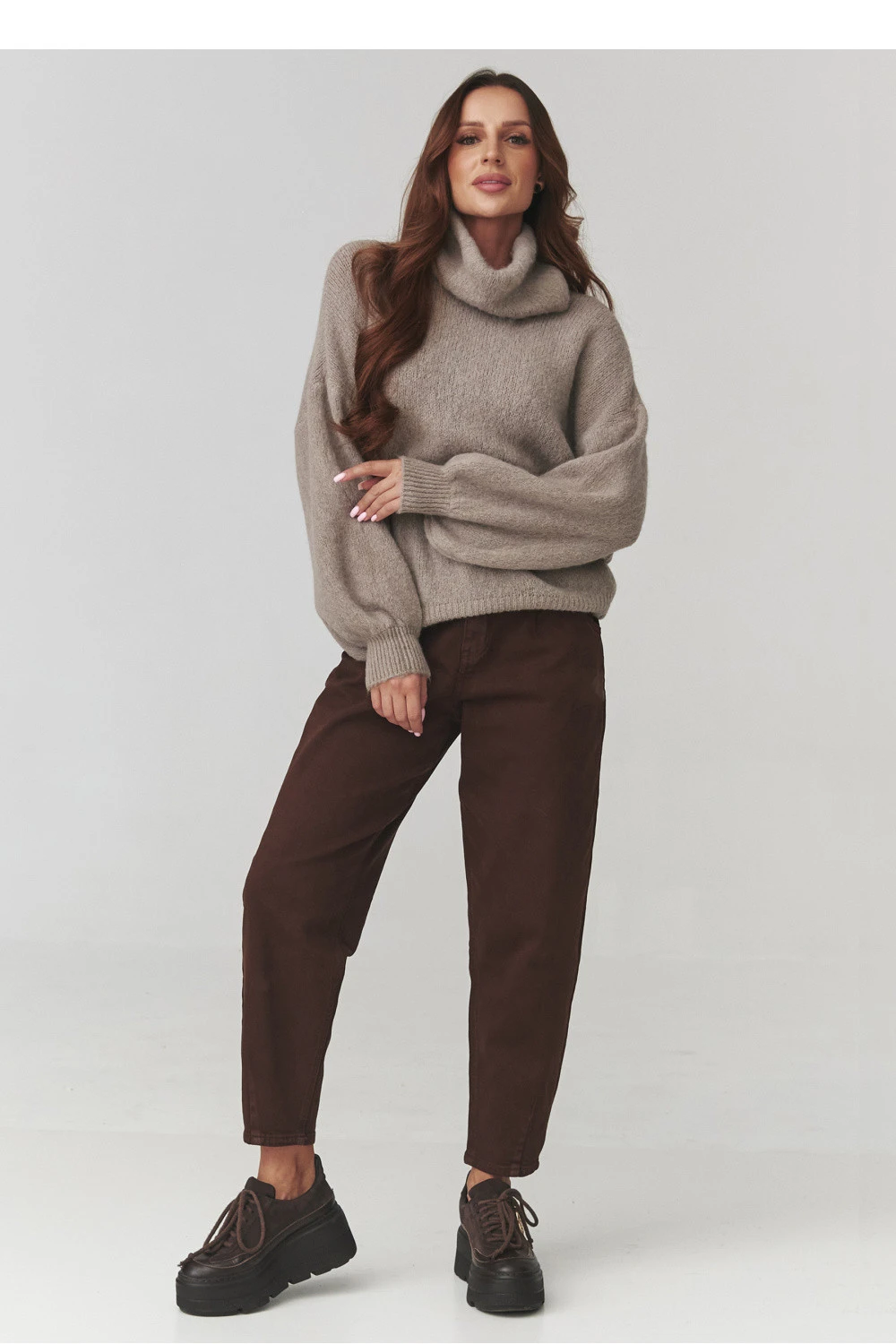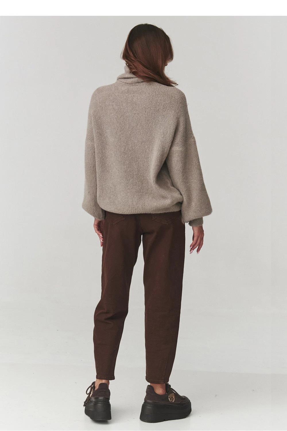 Stylový dámský oversized golfový svetr je ideální volbou na chladnější dny. Vyrobený z měkké, příjemné na dotek pleteniny poskytuje výjimečný komfort a teplý pocit po celý den. Volný střih s širokými rukávy a otočeným golfovým límcem vytváří módní, uvolněnou siluetu, která skvěle vypadá jak v casualových, tak i v elegantnějších stylizacích. Tento svetr je must-have pro podzimní/zimní sezónu! Skvěle se kombinuje s džíny, kalhotami s vysokým pasem nebo midi sukní. Ideální do práce, na procházku nebo setkání s přáteli. Vyrobeno v Itálii.