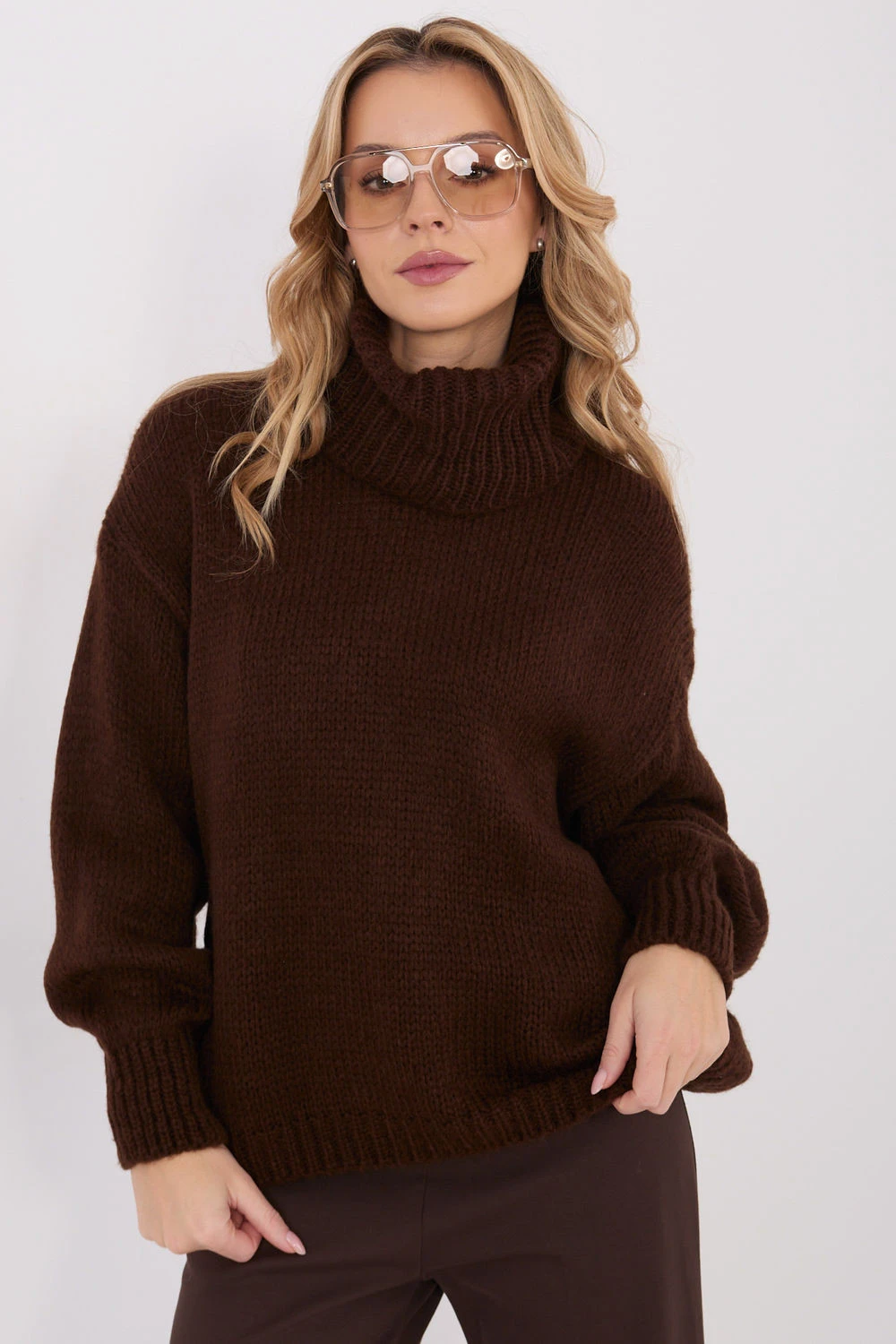 Volný dámský svetr s golfovým límcem je ideální volbou pro každodenní, ležérní stylizace. Vyrobený z směsi akrylu, mohéru a nylonu, je měkký, lehký a příjemný na dotek, poskytující vysoký komfort při nošení po celý den. Model se standardní délkou a dlouhým rukávem se vyznačuje pestrou texturou materiálu, která mu dodává výjimečný charakter, i když jeho dominující vzor zůstává hladký. Svetr má golfový límec, který dodává tepla a stylového zakončení, zároveň zdůrazňuje jeho volný, uvolněný střih. Bez zapínání je mimořádně pohodlný a snadno se stylizuje. Je to skvělá volba pro ženy, které ocení pohodlí, jemné látky a módní, nenáročný vzhled.