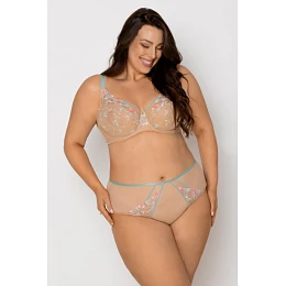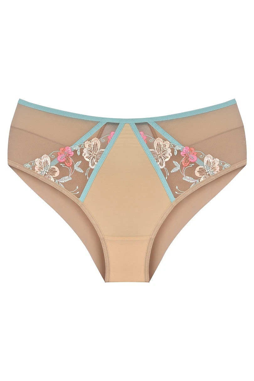 Přidejte do své sbírky spodního prádla nádech jemné elegance s kalhotkami tělové barvy s květinovou výšivkou. Jsou vyrobeny z lehkého, poloprůhledného materiálu a poskytují nejen pohodlí, ale také jedinečný vzhled. Přední stranu kalhotek zdobí krásná, barevná květinová výšivka a jemná ramínka, která zdůrazňují linii boků. Díky hladké zadní části a měkkému materiálu jsou ideální pro každodenní nošení - pod oblečením jsou nepřehlédnutelné, a přesto plné ženského půvabu.