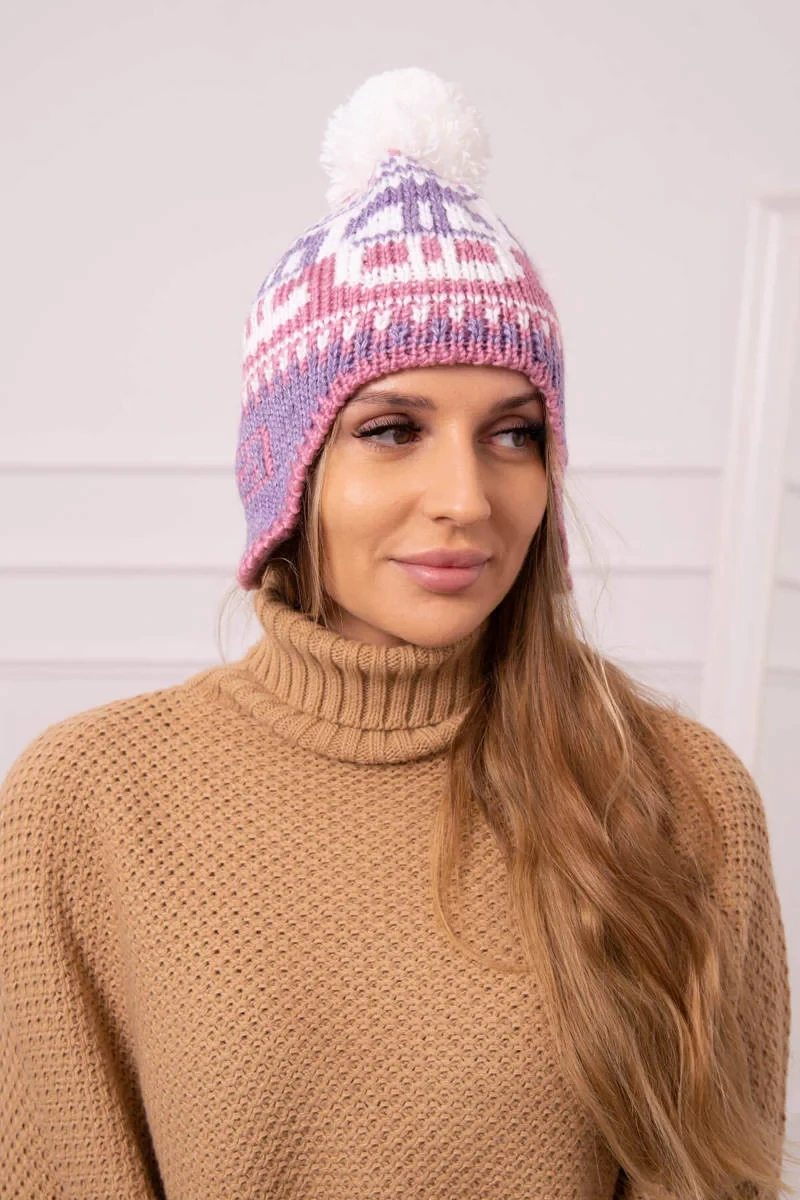 Rosa dámská čepice s bambulí růžová model 20806875 - K-Fashion