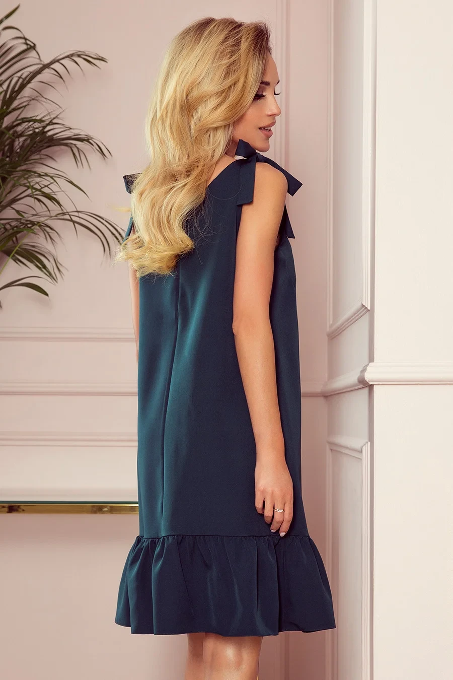 ROSITA - Dámské šaty v lahvově zelené barvě s mašličkami na ramenou a s volánkem 306-2