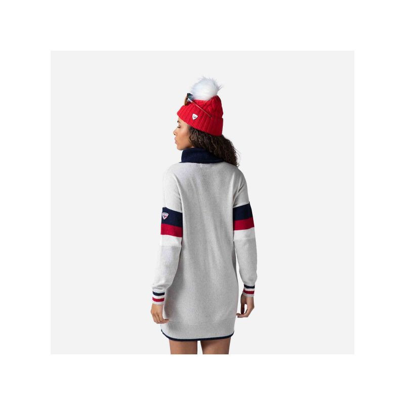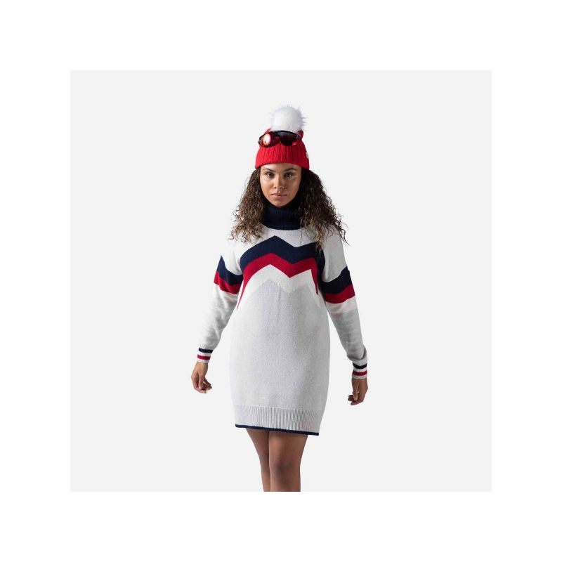 Podziel się swoją miłością do gór i całej ich magii, zakładając damską sukienkę Rossignol Mountain Knit Dress. Jej stylistyka mocno nawiązuje do alpejskiego dziedzictwa marki Rossignol, z paskami inspirowanymi górami i kolorami inspirowanymi francuską flagą. W Alpach Francuskich lub we własnym zakątku świata, mieszanka merynosów i kaszmiru zawsze jest luksusowo miękka i ciepła.