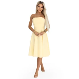 Pastelově žluté midi šaty bez ramínek - Numoco - rozšířené na svatbu