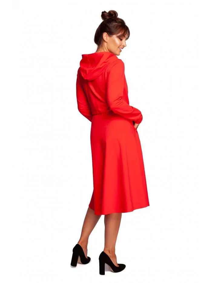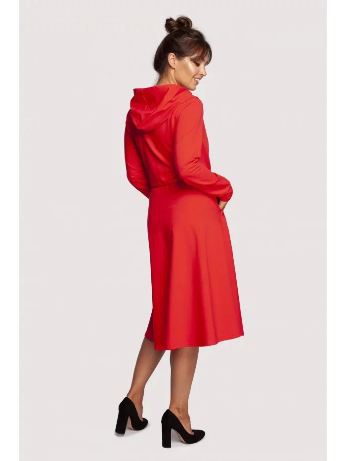 Rozšířené šaty s kapucí B245 červené - BeWear