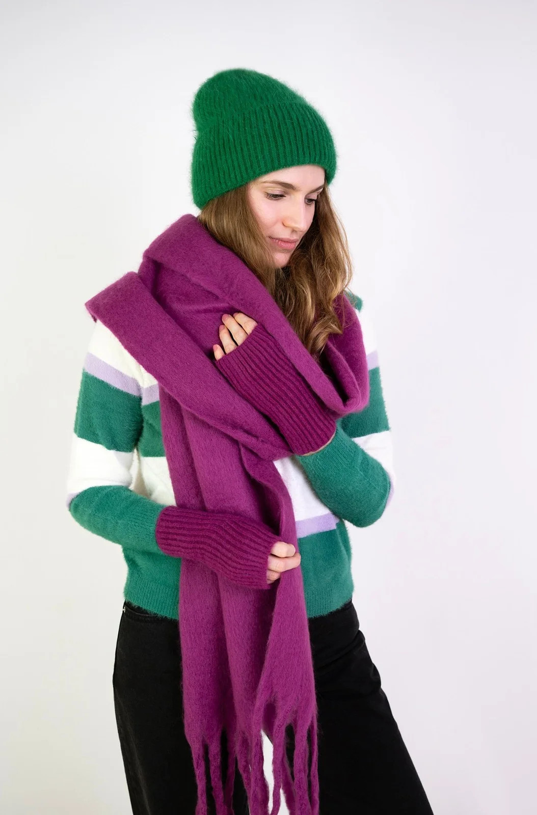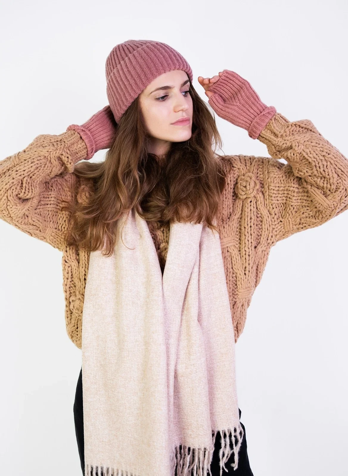Krátké jednobarevné žebrované palčáky