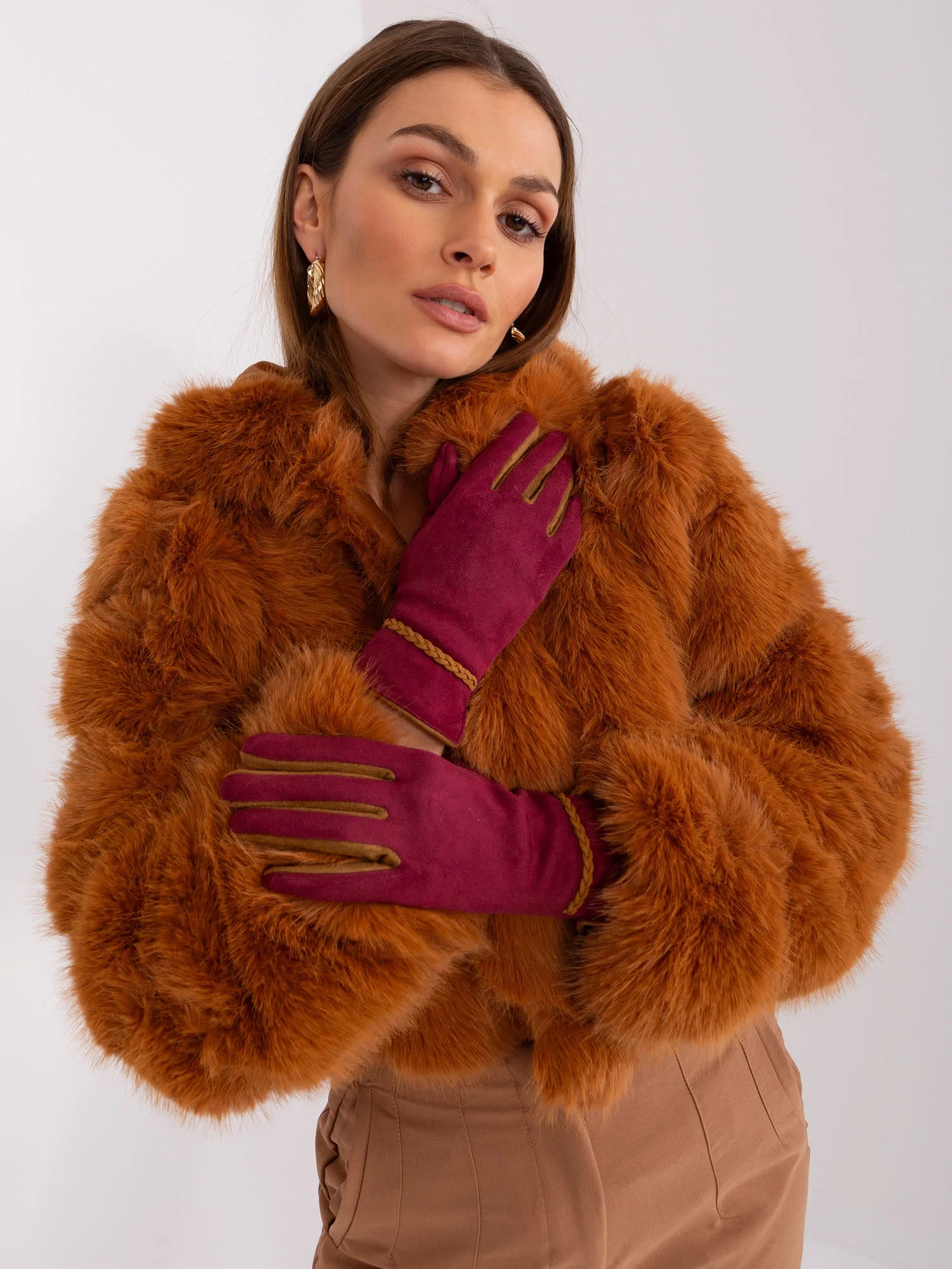 Bordó dotykové rukavice pro ženy .