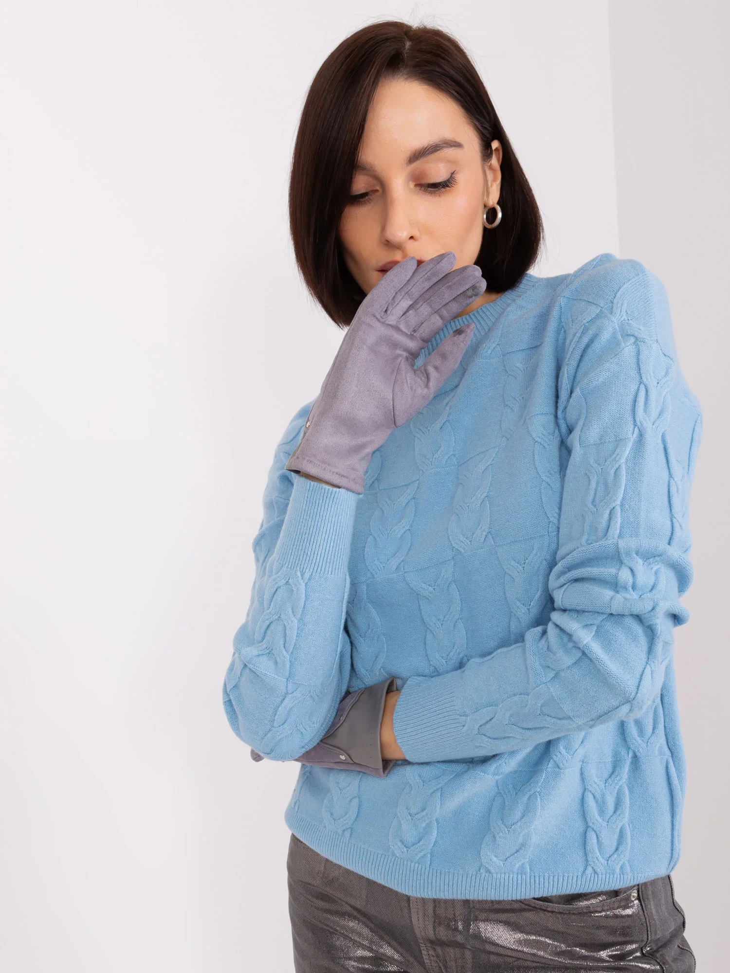 Šedé dotykové rukavice pro ženy .
