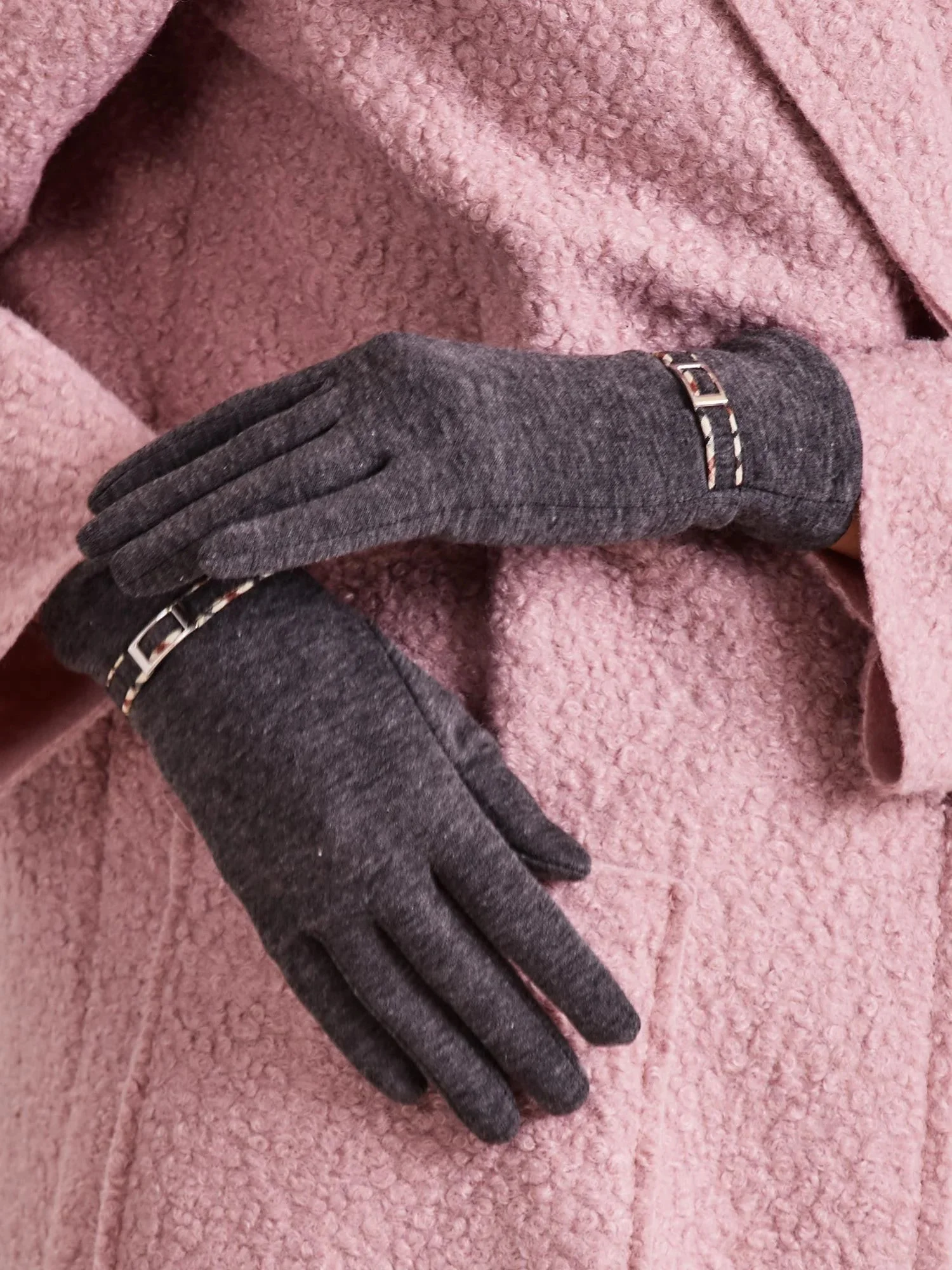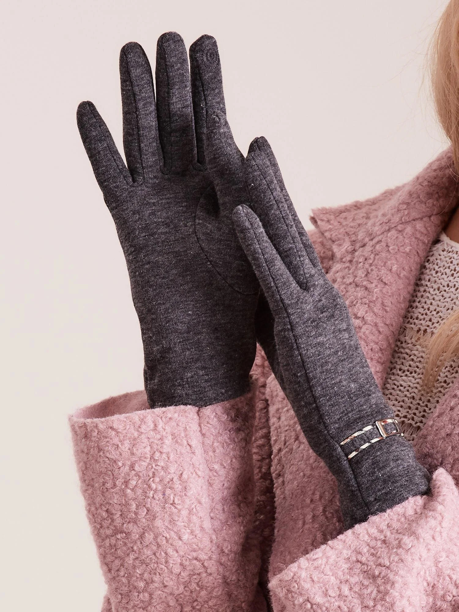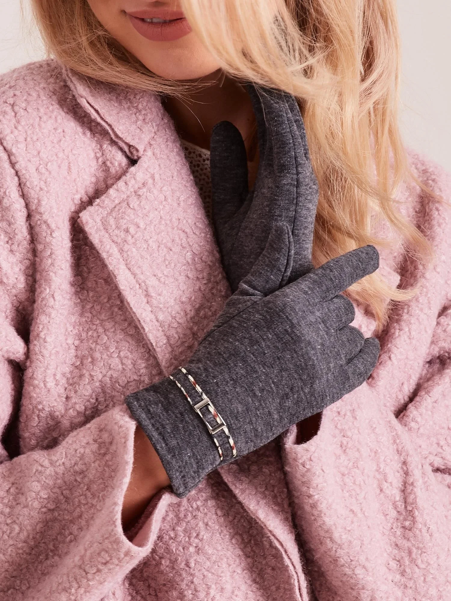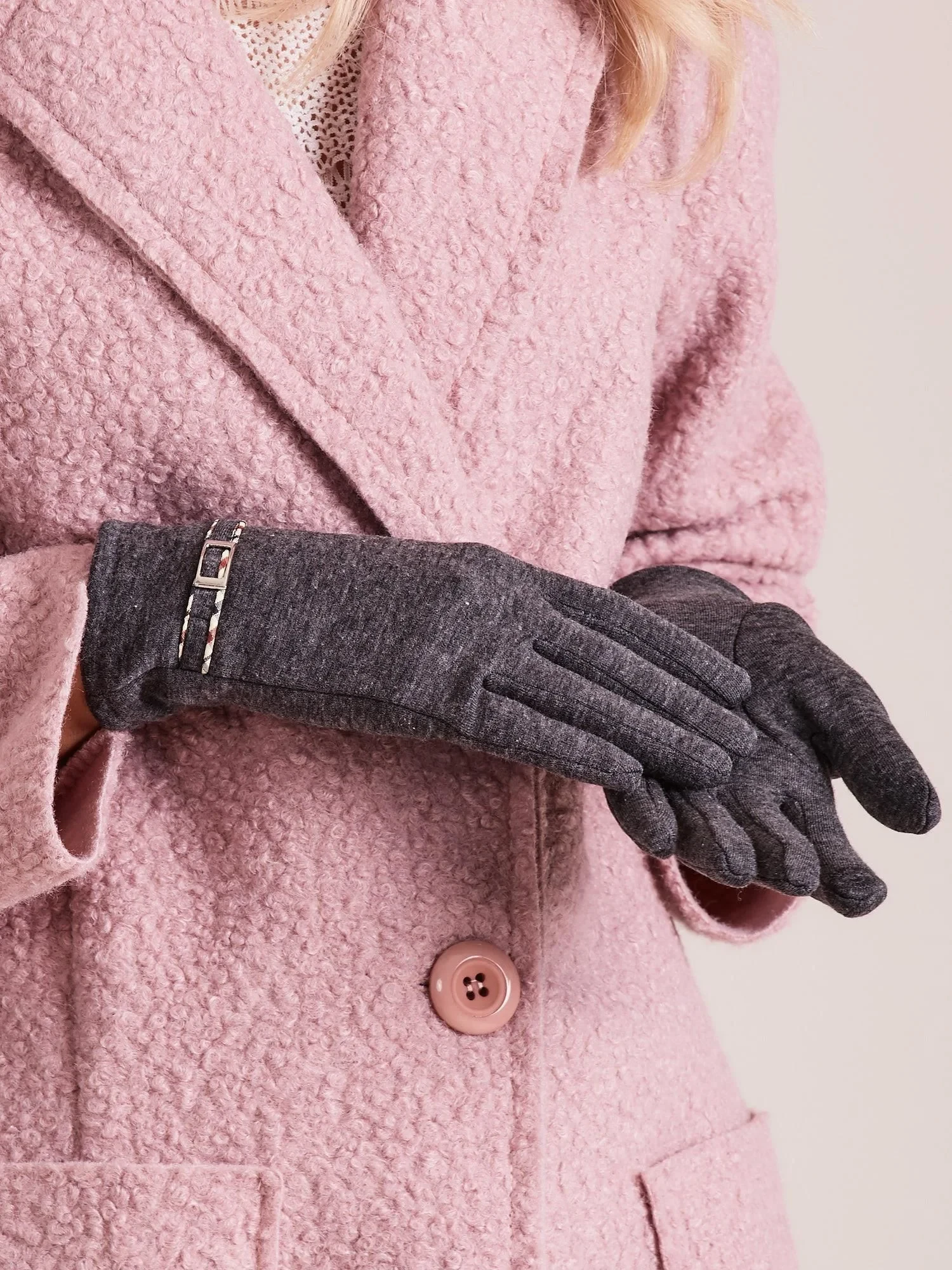 Dámské rukavice se sponou, tmavě šedé