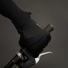 - Górna część dłoni wykonana z ciepłego, oddychającego materiału i wiatroodpornego softshellu
