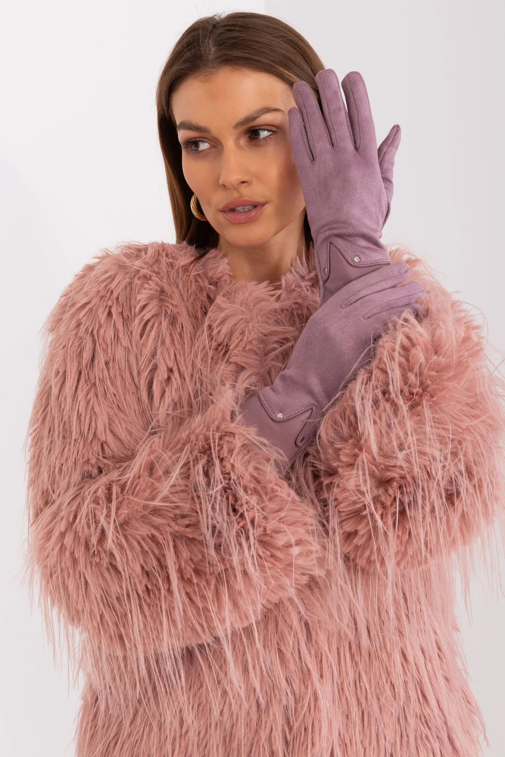 Elegantní dámské rukavice vyrobené z kombinace dvou různých materiálů. Palec a ukazováček s vyšívanou květinou umožňují ovládat telefon, aniž byste si museli rukavice sundávat.