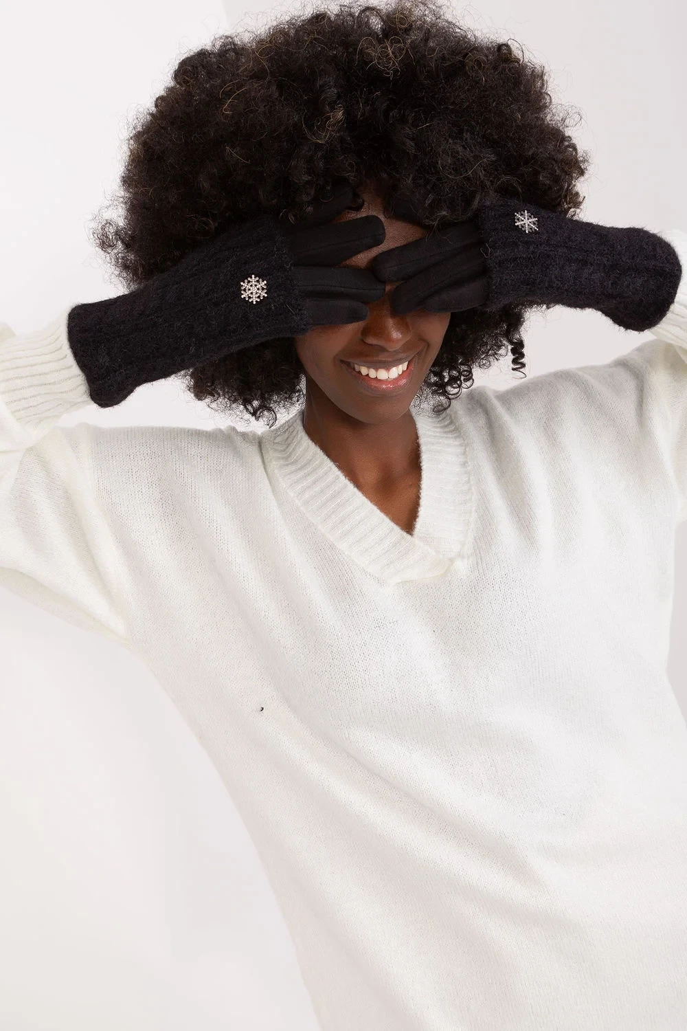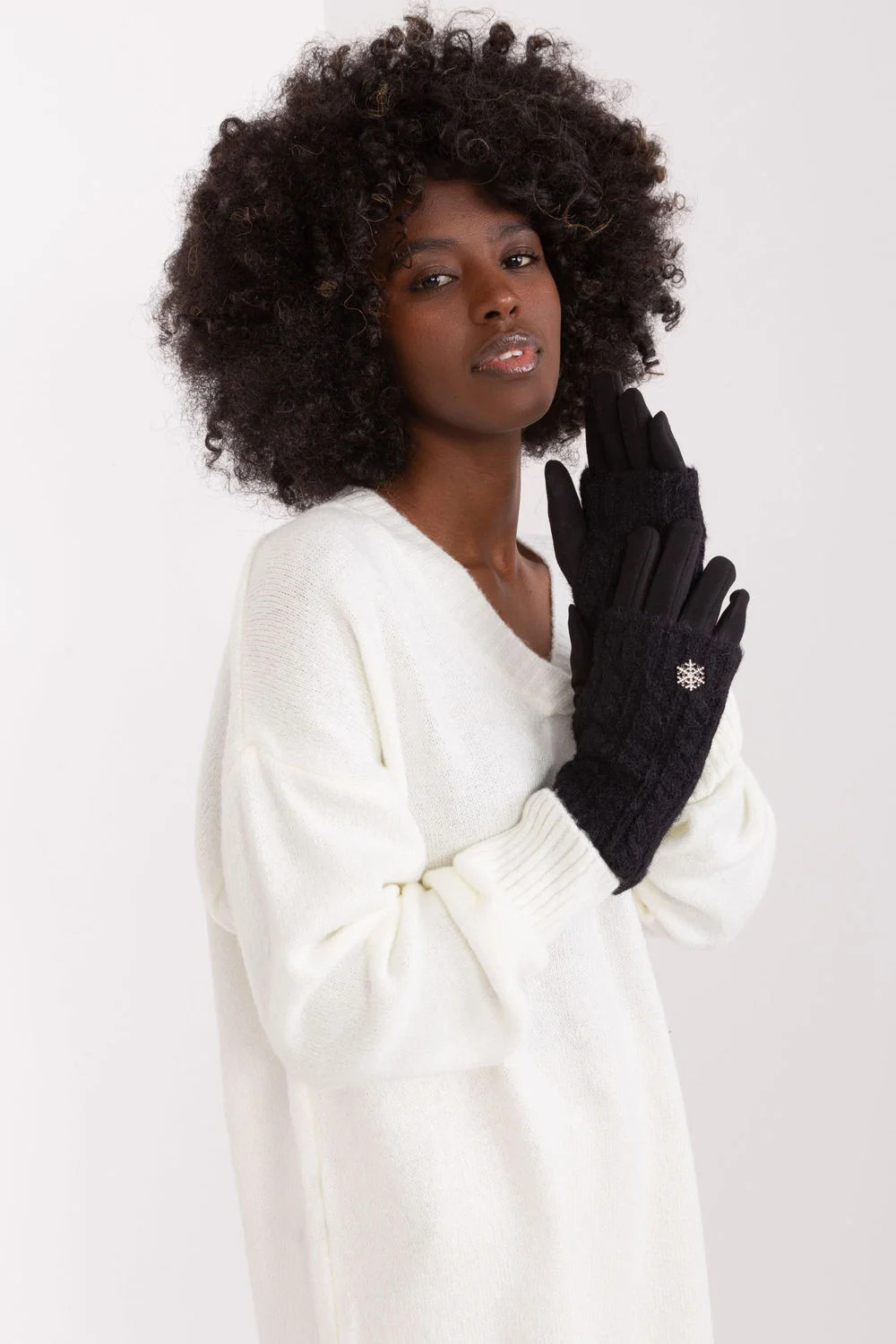 Hladké dámské rukavice s přídavnou pletenou izolací. Rukavice mají na ukazováčku vyšívanou květinu, která vám umožní používat telefon, aniž byste si ho museli sundávat.