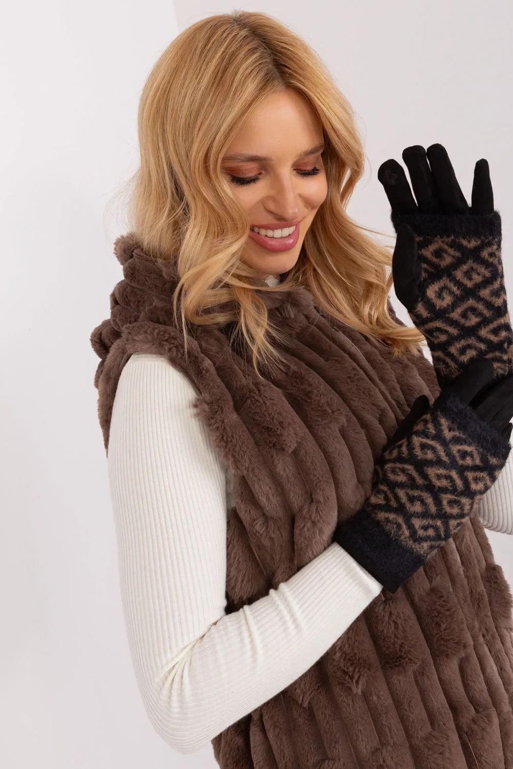Hladké dámské rukavice s dodatečnou pletenou izolací, kterou lze stáhnout. Rukavice mají na ukazováčku vyšívanou květinu, která umožňuje používat telefon, aniž byste si ho museli sundávat.