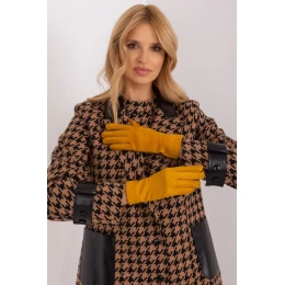 Elegantní dámské rukavice z hladké zateplené tkaniny. Ukazováček s vyšívanou květinou umožňuje ovládat telefon, aniž byste si museli rukavice sundávat.