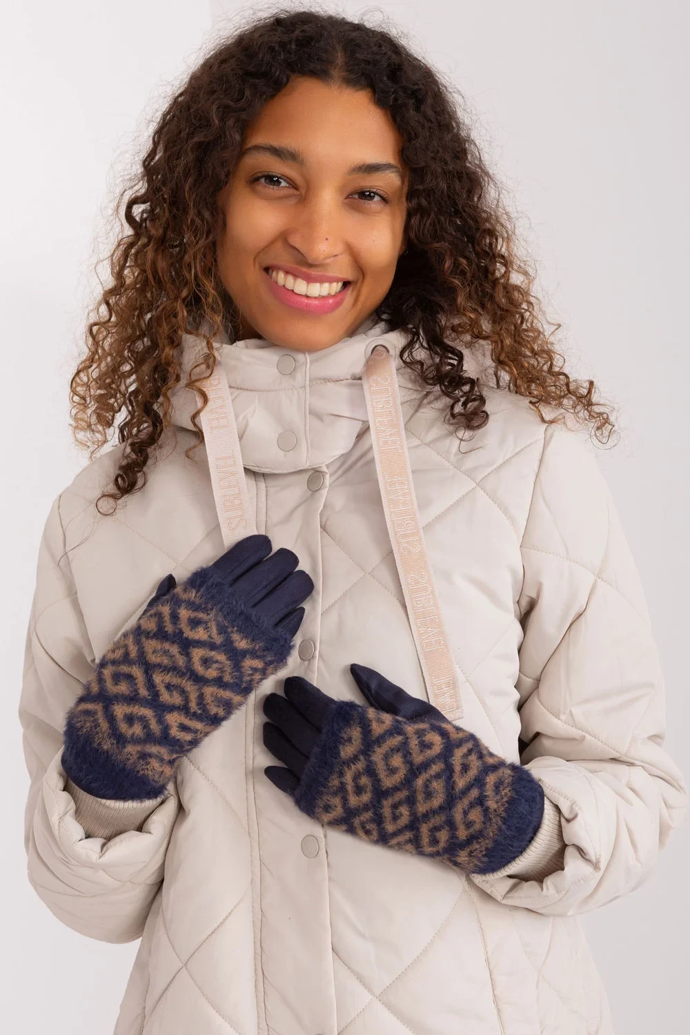 Hladké dámské rukavice s dodatečnou pletenou izolací, kterou lze stáhnout. Rukavice mají na ukazováčku vyšívanou květinu, která umožňuje používat telefon, aniž byste si ho museli sundávat.