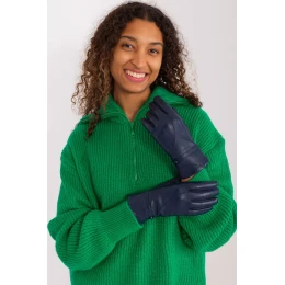 Elegantní dámské rukavice vyrobené z kombinace dvou různých materiálů. Ozdobné pásky s knoflíky na zápěstí. Ukazováček s vyšívanou květinou, který umožňuje ovládat telefon, aniž byste si museli rukavice sundávat.