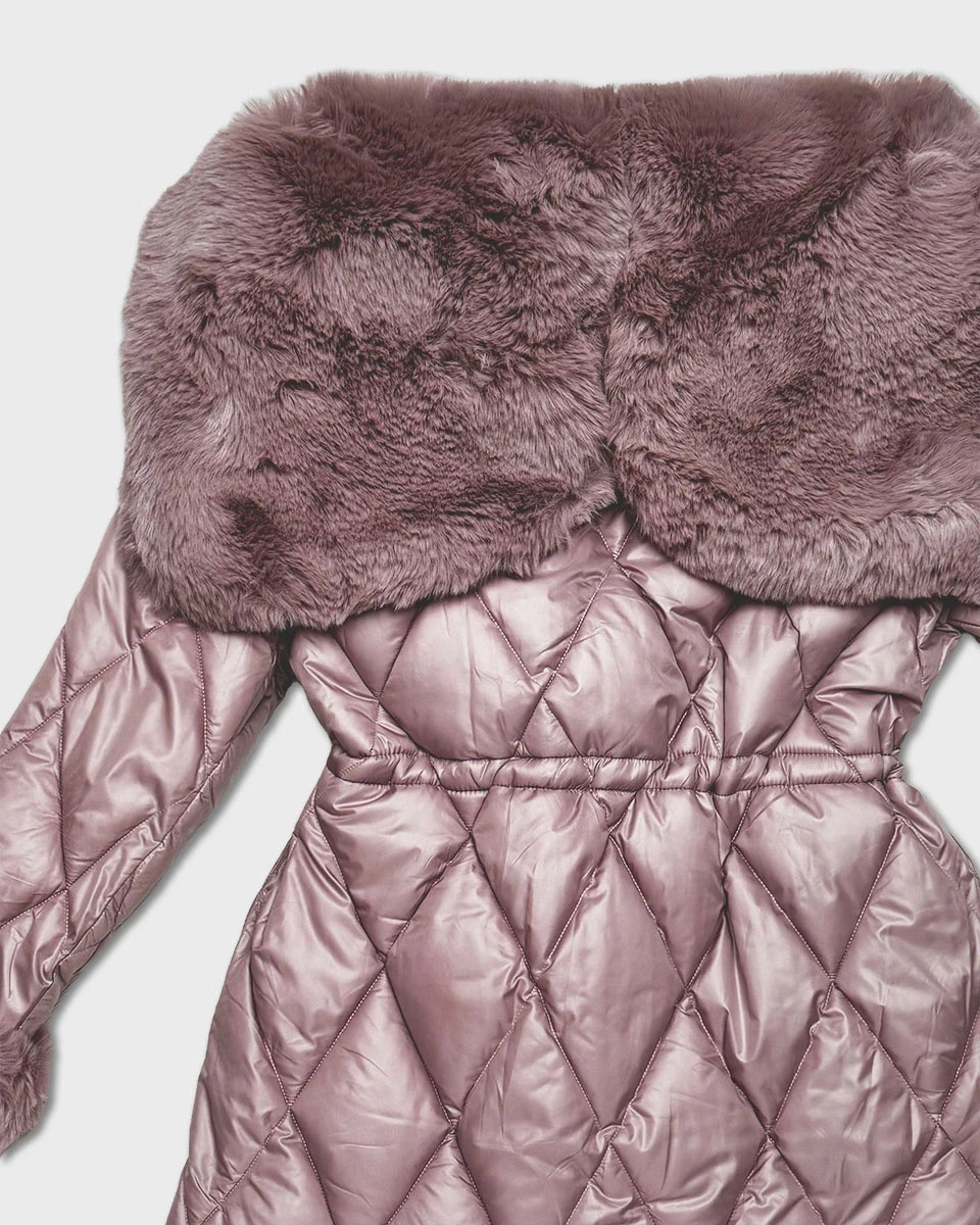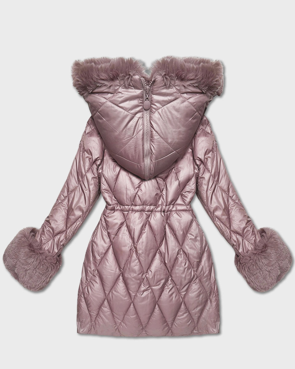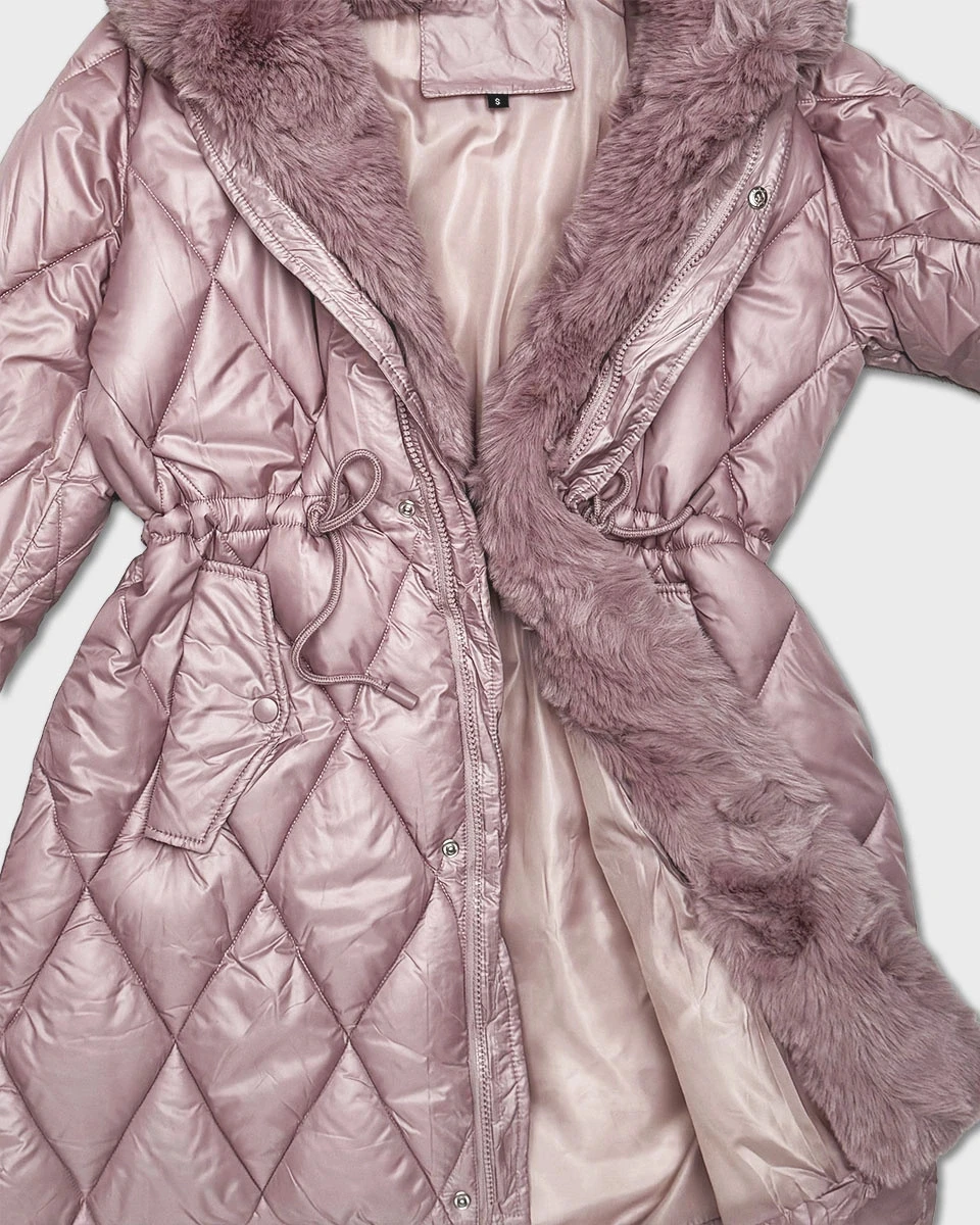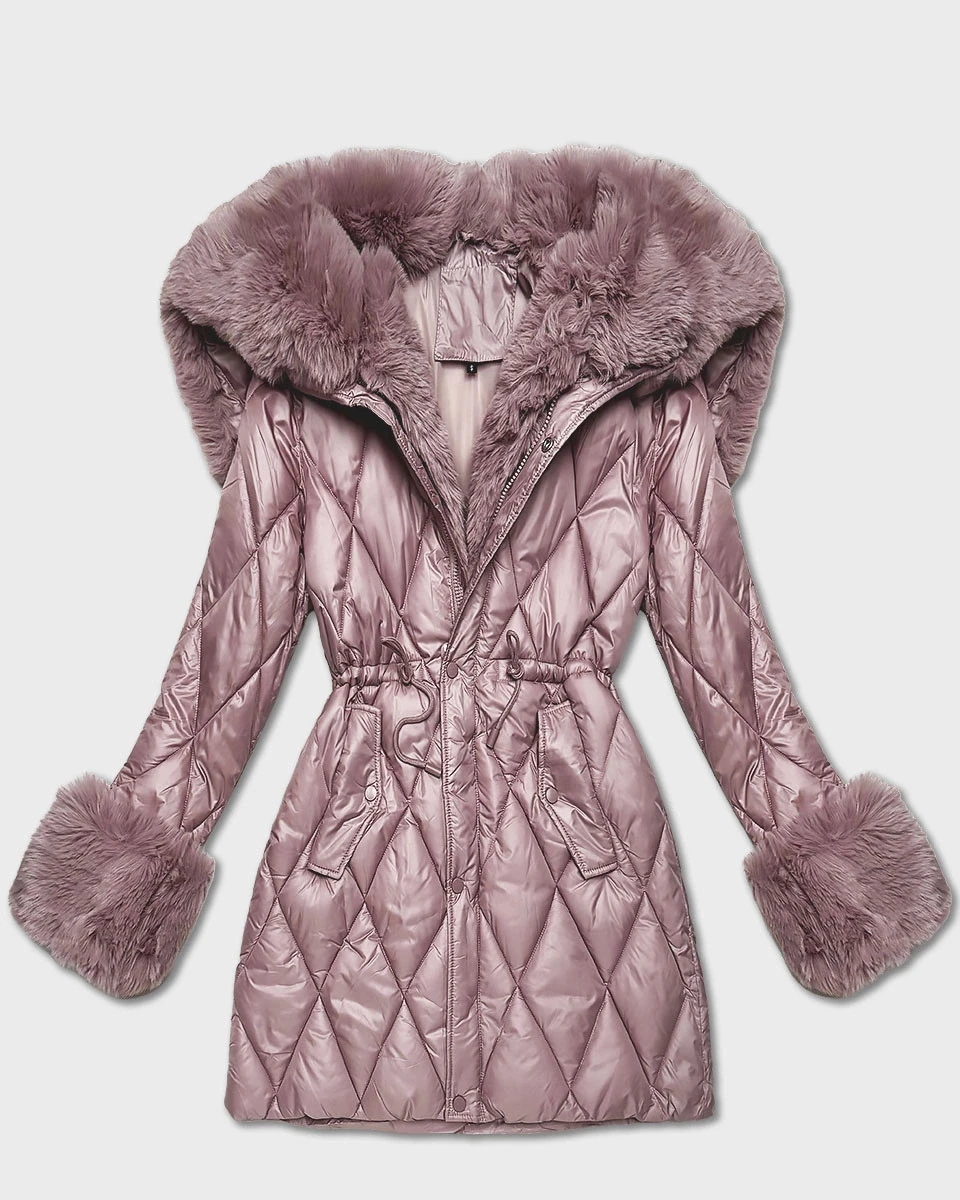 Růžová bunda s kožešinovou kapucí, která tvoří límec (T3-2635#-52)