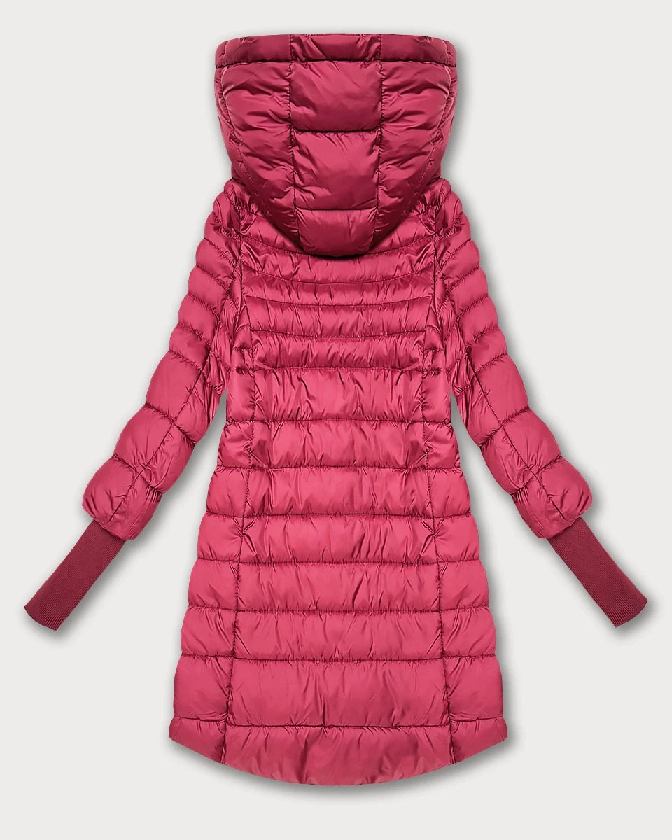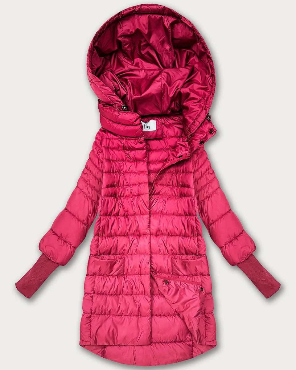 Růžová dámská bunda pro přechodné období s stahovacími lemy model 21389932 - FLY MODA