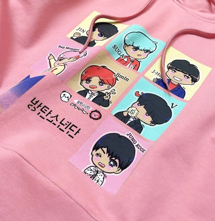 Mikina má volný střih, délku k bokům a obléká se přes hlavu. Rukávy a spodní okraj modelu jsou olemované stahovacími lemy. Model má jednu "klokaní" kapsu.