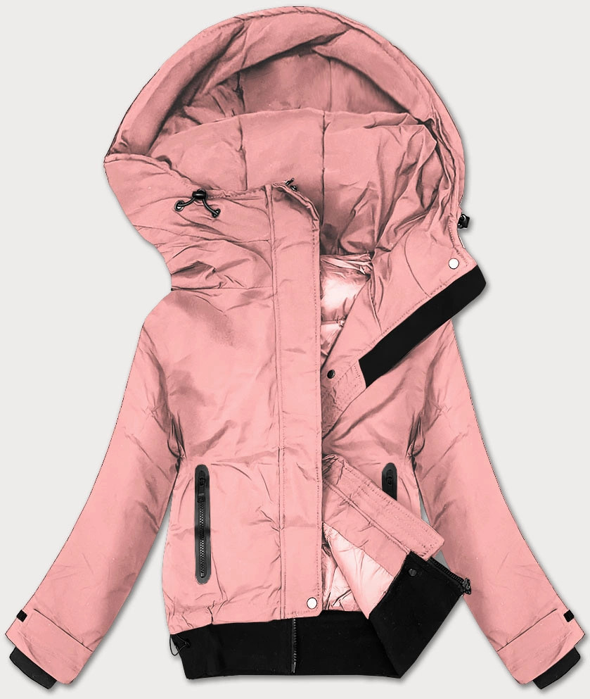 Růžová krátká dámská bunda se stahovacími lemy model 21469333 - J.STYLE