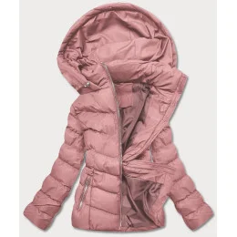 Růžová krátká dámská péřová zimní bunda (5M726-46)