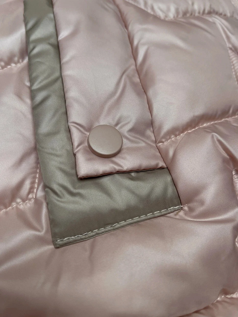 Vesta je zateplená syntetickou péřovou výplní, má dvě kapsy bez zapínání a zapíná se zipem. Model má délku k bokům.