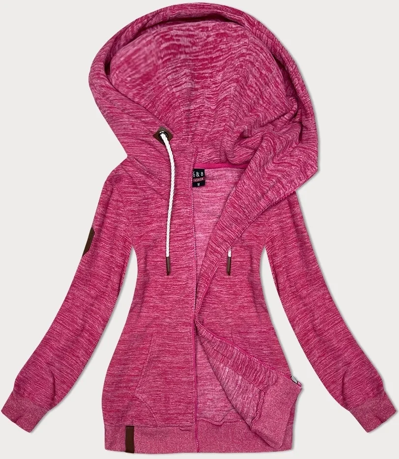 Růžová melanžová dámská polarová (fleecová) mikina s kapucí (2312)