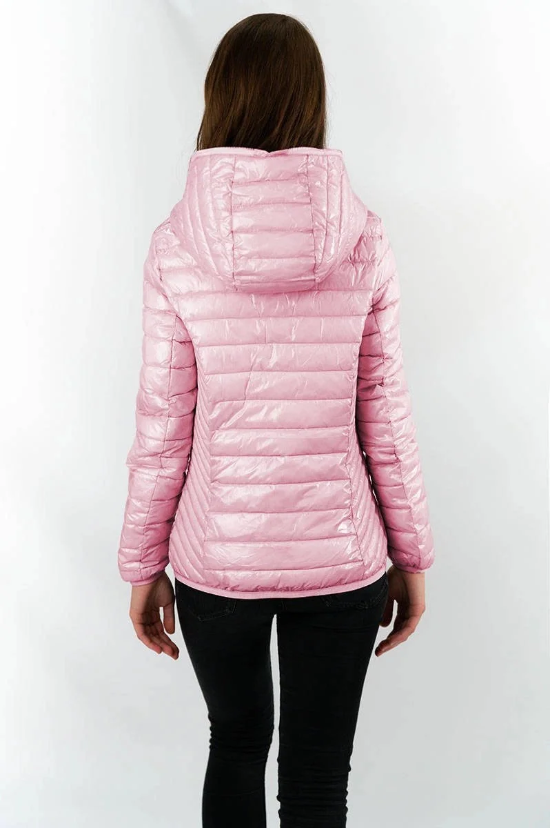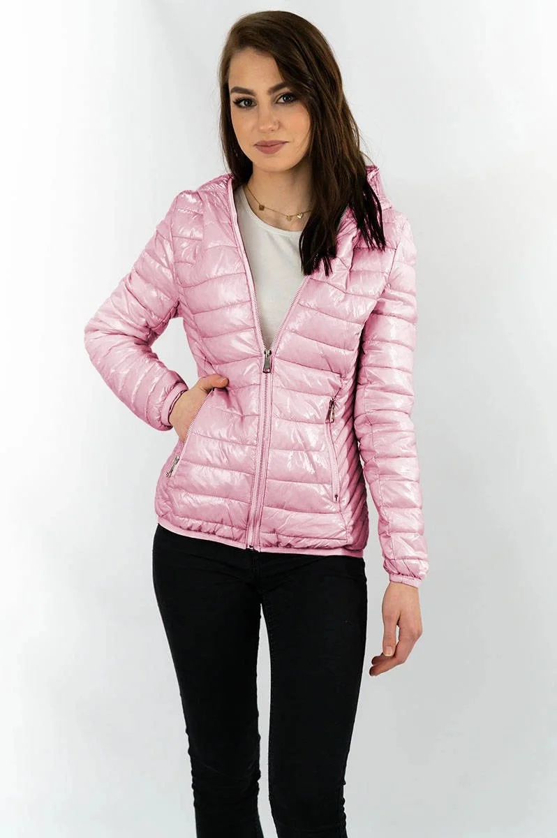 Přidání recenze k Růžová prošívaná dámská bunda s kapucí (B9561)