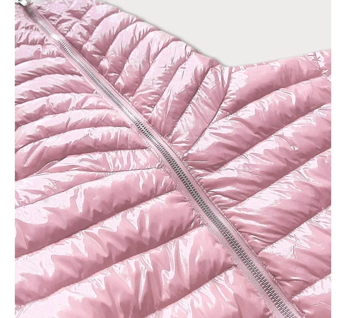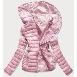 Růžová prošívaná dámská bunda s kapucí (B9561)