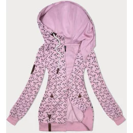 Růžová sportovní mikina s kapucí a se vzorem vlaštovek (2309)