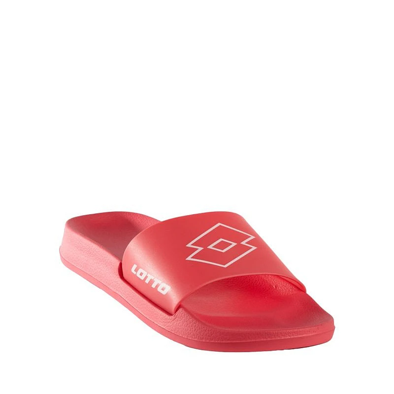 Klapki Lotto Lathi różowo-białe 2400660U 4010 Klapki Lotto przeznaczone dla kobiet i mężczyzn sprawdzą się na basenie, po treningu czy codziennym użytkowaniu. Prosty fason. Profilowana podeszwa środkowa. Podeszwa zewnętrzna z przyczepnym bieżnikiem.