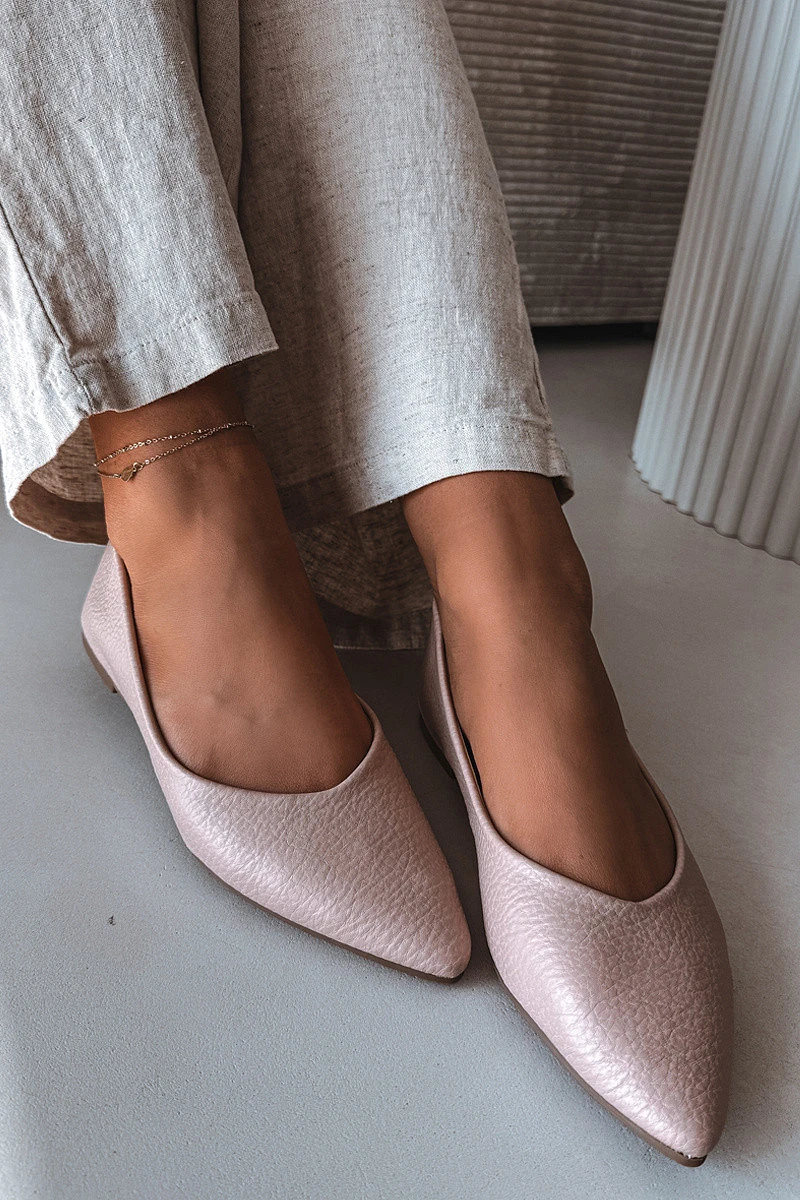 Dámské baleríny z eko kůže jsou elegantní a pohodlnou volbou pro každodenní nošení. Lehký střih zajišťuje, že boty se skvěle hodí k mnoha stylům, spojujíc komfort s ženským vzhledem. Model má špičaté nosky, které opticky zeštíhlují nohu a dodávají celkovému vzhledu jemnost. Měkká vložka zvyšuje pohodlí při nošení, zajišťujíc komfort i po celý den. Ideální baleríny pro ženy, které ocení jednoduchost, pohodlí a nadčasový styl. Při výběru velikosti se řiďte tabulkou velikostí.