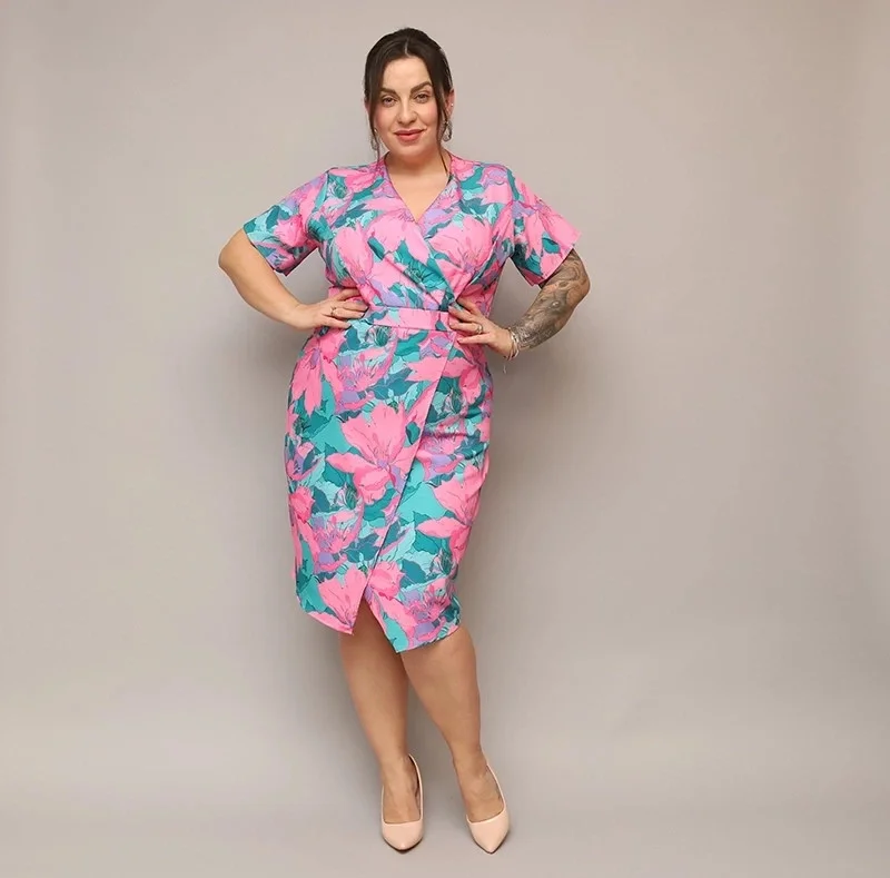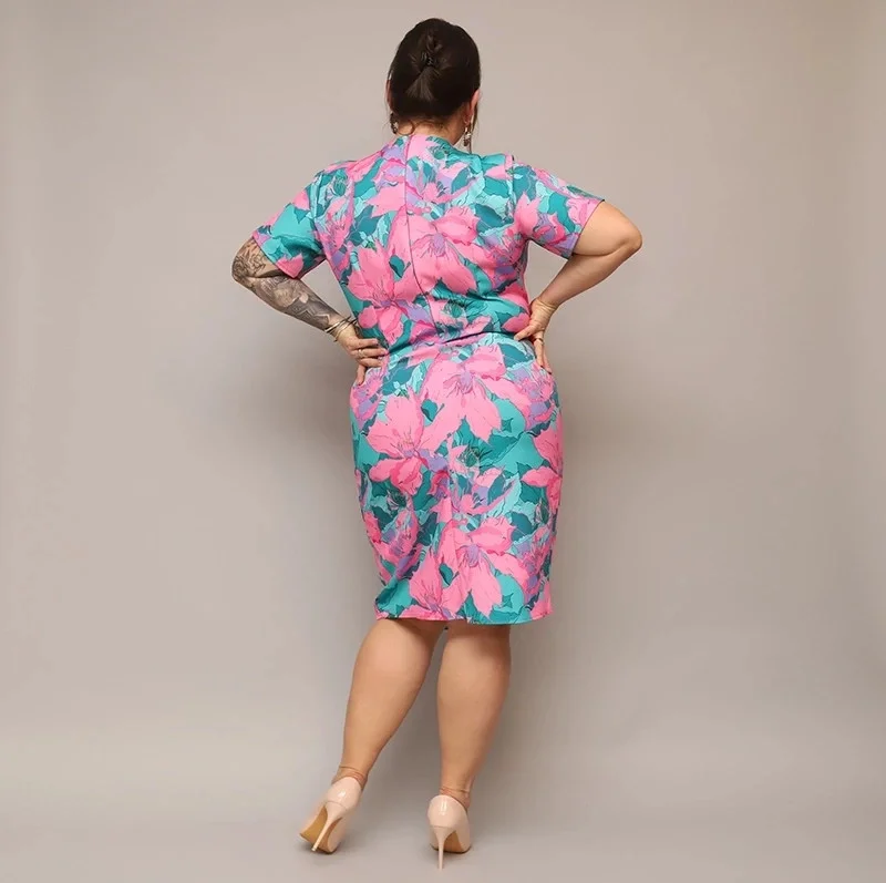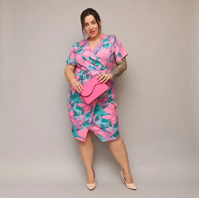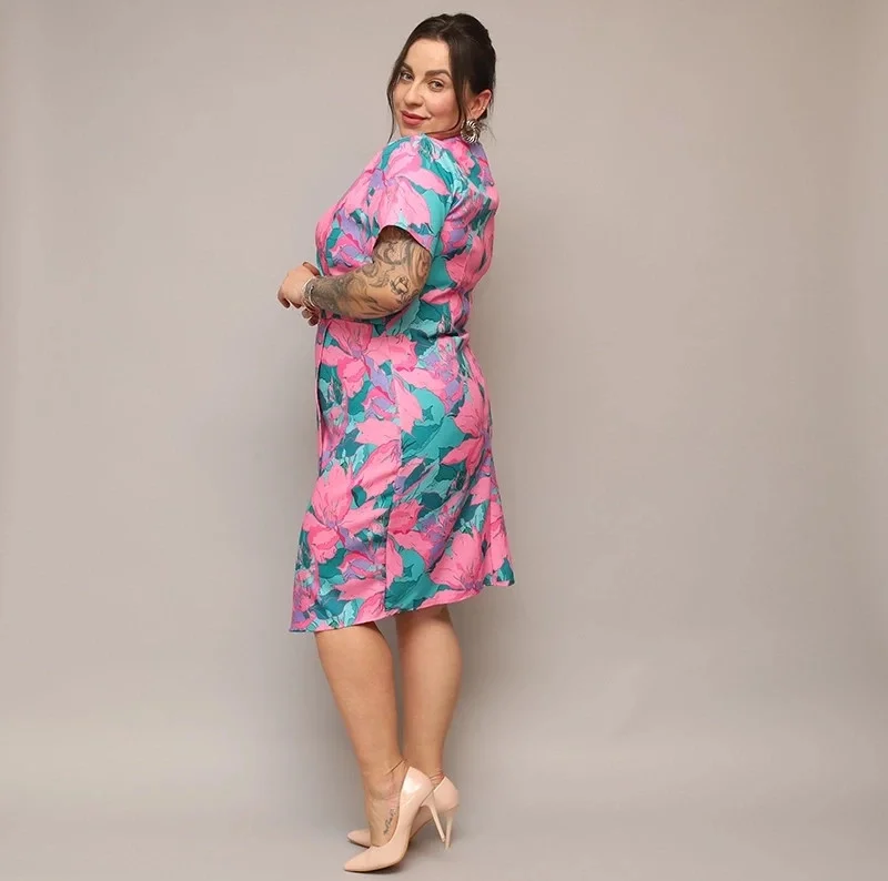 Přidání recenze k Růžovo-zelené dámské přeložené obálkové květované šaty v délce ke kolenům (742)
