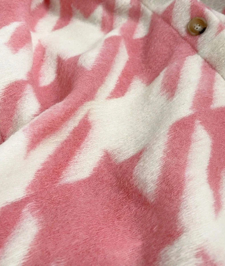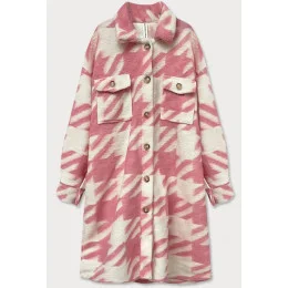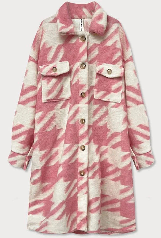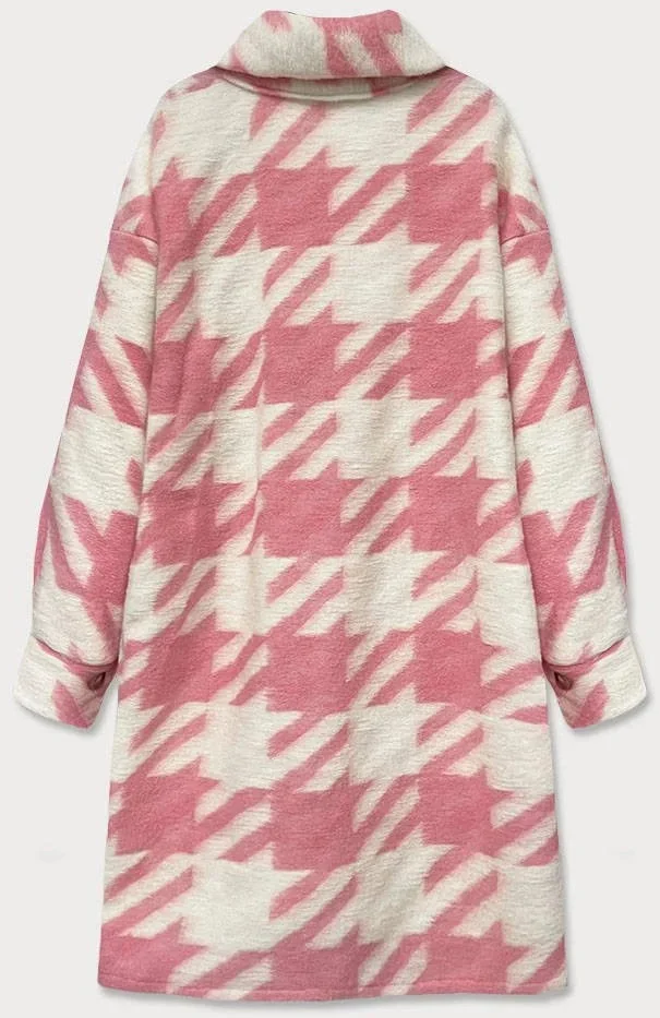 Růžový dámský košilový kabát s pepitovým vzorem (2099)