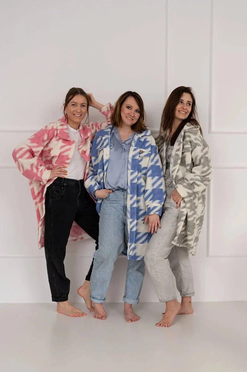 Přidání recenze k Růžový dámský košilový kabát s pepitovým vzorem (2099)