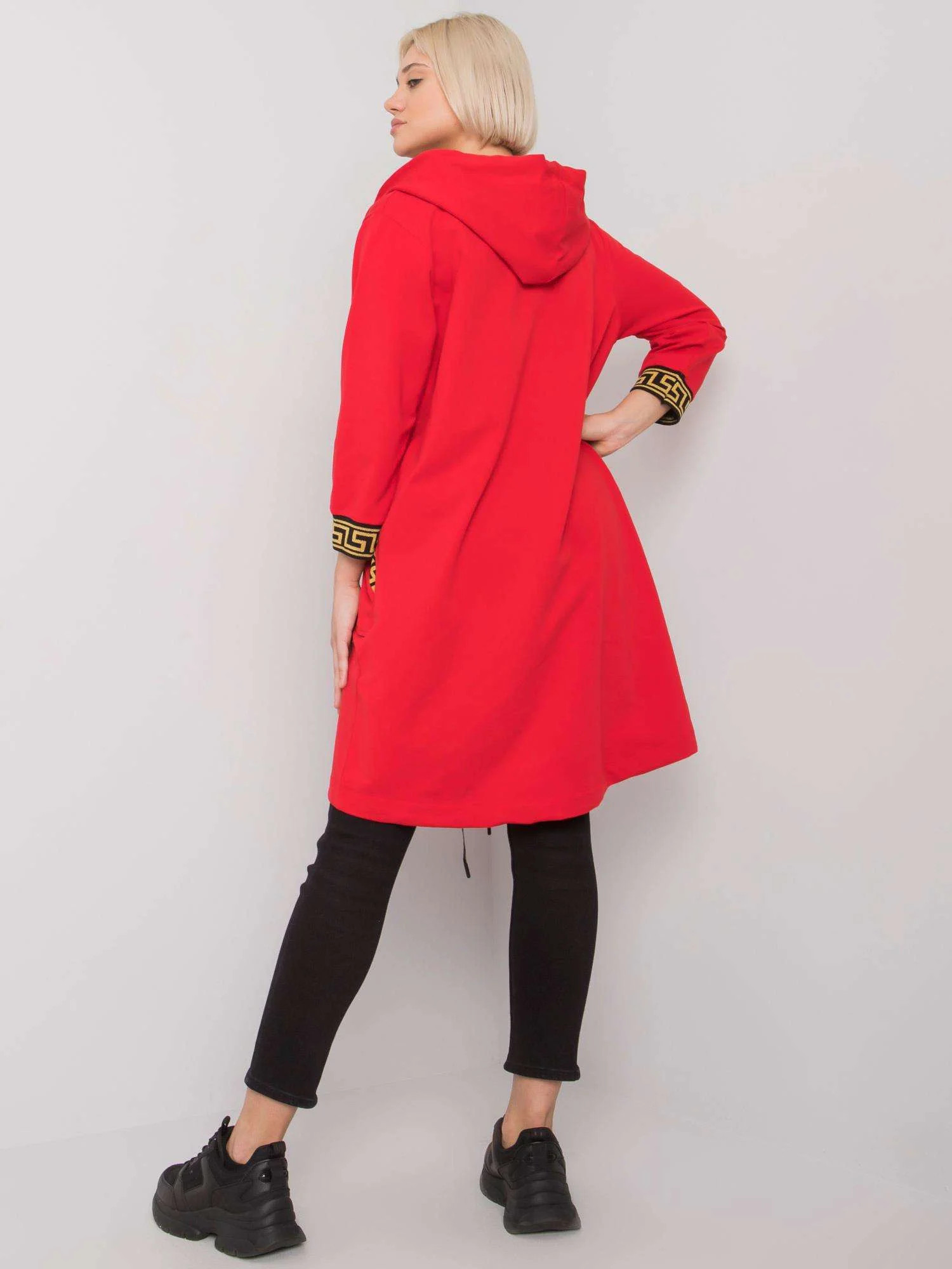 Rozměry mikiny ve velikosti S/M měřené na plocho: šířka v podpaží - 52 cm, celková délka - 93 cm, délka rukávu - 48 cm.