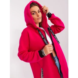 Fuchsiová dlouhá mikina na zip s kapucí .