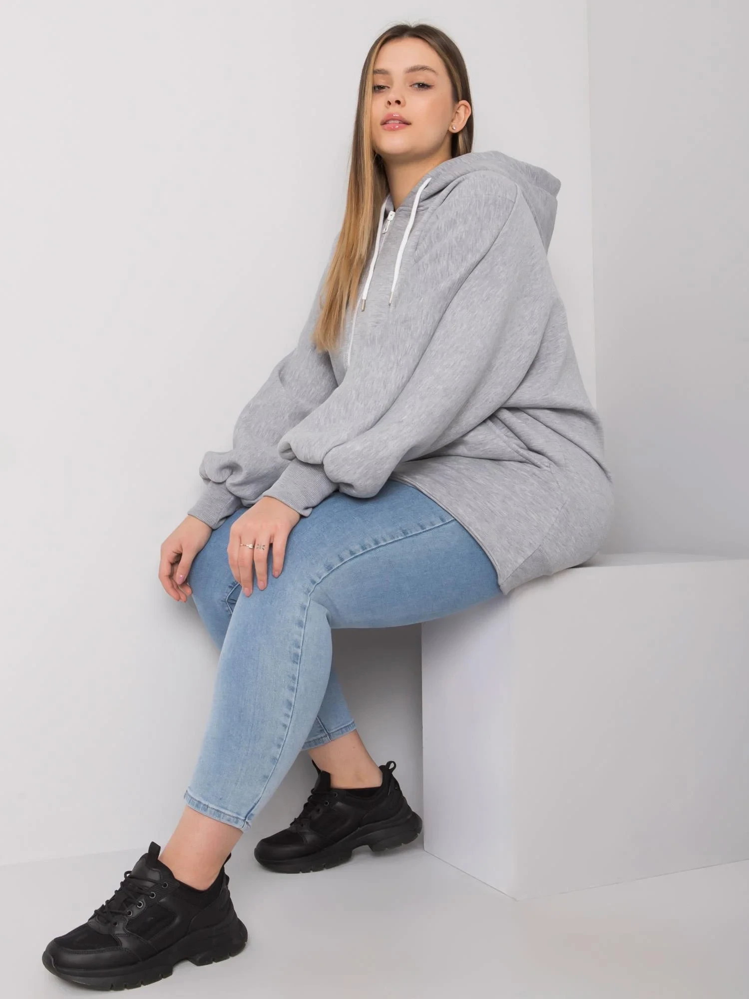 Modelka má na sobě jednu velikost. míry modelky: výška 175 cm, prsa 102 cm, pas 89 cm, boky 120 cm.