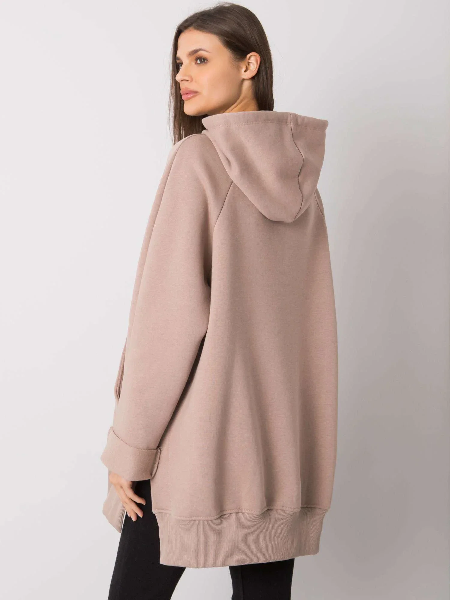 RUE PARIS Tmavě béžová mikina s klokankou a kapucí.