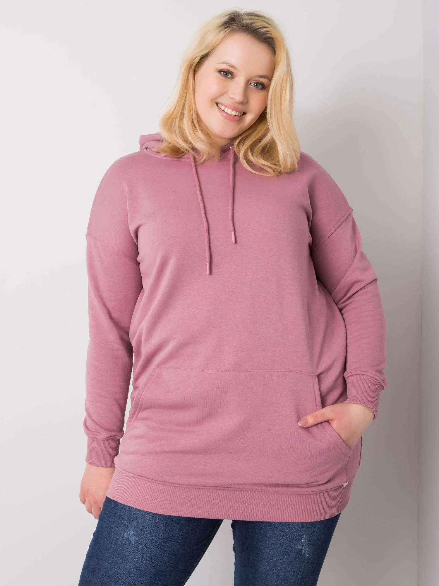 Modelka má na sobě velikost XL. Rozměry modelky: výška 172 cm, prsa 103 cm, pas 73 cm, boky 103 cm.
