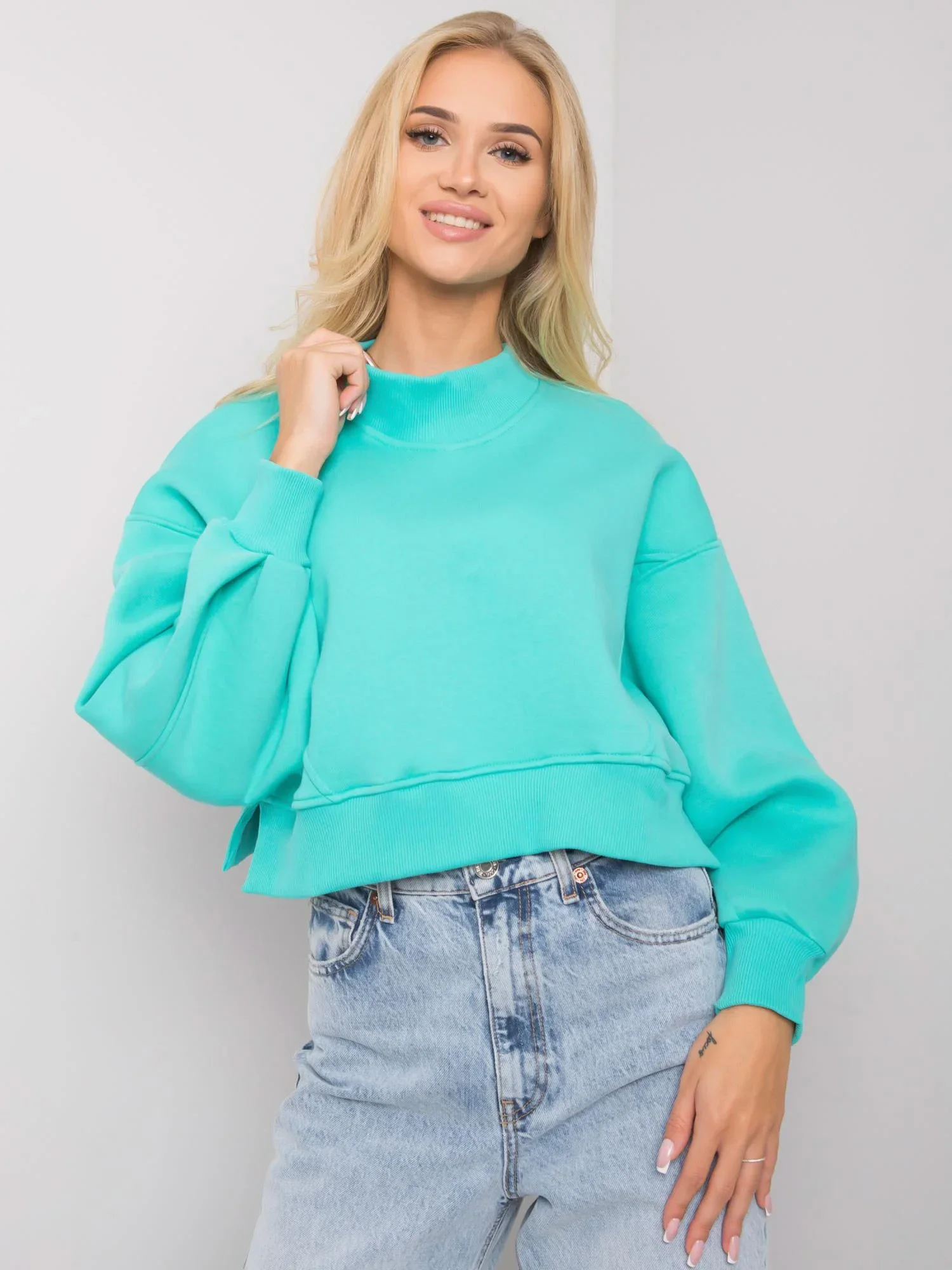 Tyrkysová dámská základní mikina .
